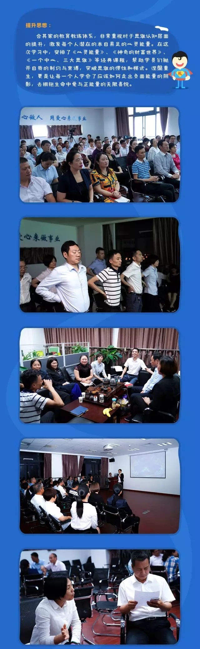 6月10日~13日,合其家教育教練成長日培訓(xùn)如期舉行。來自全國各運營中心的預(yù)備教導(dǎo),準教導(dǎo)、教導(dǎo)共計60多人匯聚上海合其家總部,共同經(jīng)歷了為期4天3夜的學(xué)習(xí)和成長。本次教育教練日圍繞“突出重點學(xué),講究方法教;區(qū)分層次練,貼近實戰(zhàn)訓(xùn)”,收到了良好的成效。